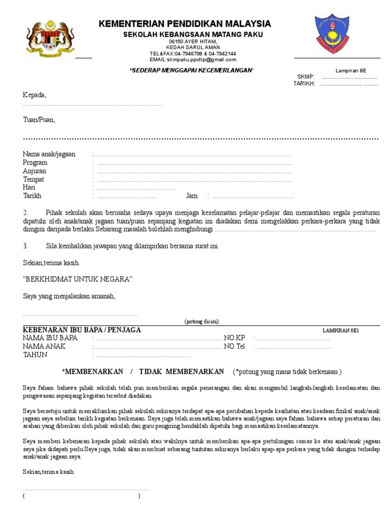 Doc Contoh Surat Kebenaran Ibu Bapa Dol Juan Academia Edu